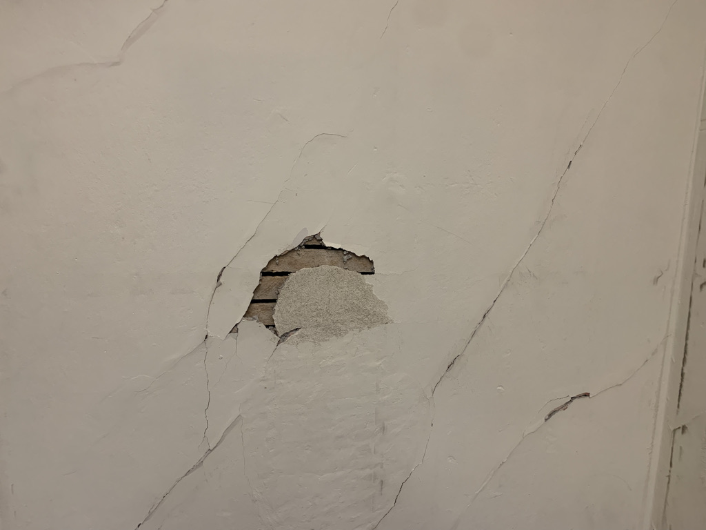 To fix lathe and plaster properly, you need to do a multi-step process. First, I removed all the broken plaster. Then I prepped the wall to be re-glued to the lathe. Using special plaster-specific repair material, I re-bonded the plaster to the lathe. I had to come back after it cured. Once it was set, I could re-apply the covering. It took many, many layers of compound because plaster is applied very thick. However, done properly, the compound binds together and is much more durable to cracks and settling.