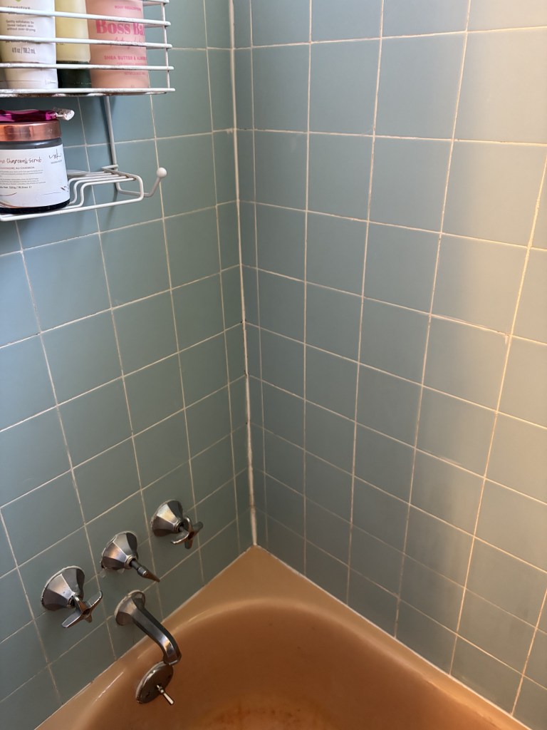 And you can’t just apply new grout or caulking over the old stuff. That just seals in mildew, or creates a bad adhesive so the caulking can’t work.